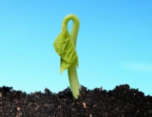 Consider the young bean to the right. Is the young bean able to sense the warmth and energy of the sun, the refreshment of the water in the soil around its roots, or the coolness of the wind blowing through its leaves? Probably it does not, because without a nervous system the bean very likely does not feel pleasure and pain. It exists, but the bean does not question its existence, nor does it have the consciousness to be able to observe the universe and ask questions like "Why?" or "Where did it come from?" The bean grows if it receives enough nutrients like sun and water until its life cycle is complete, producing seeds so that there might be more green beans to survive it. The bean is much the same as a small pond that grows from the streams that feed into it, and ends when the sun dries the pond to an empty bed.